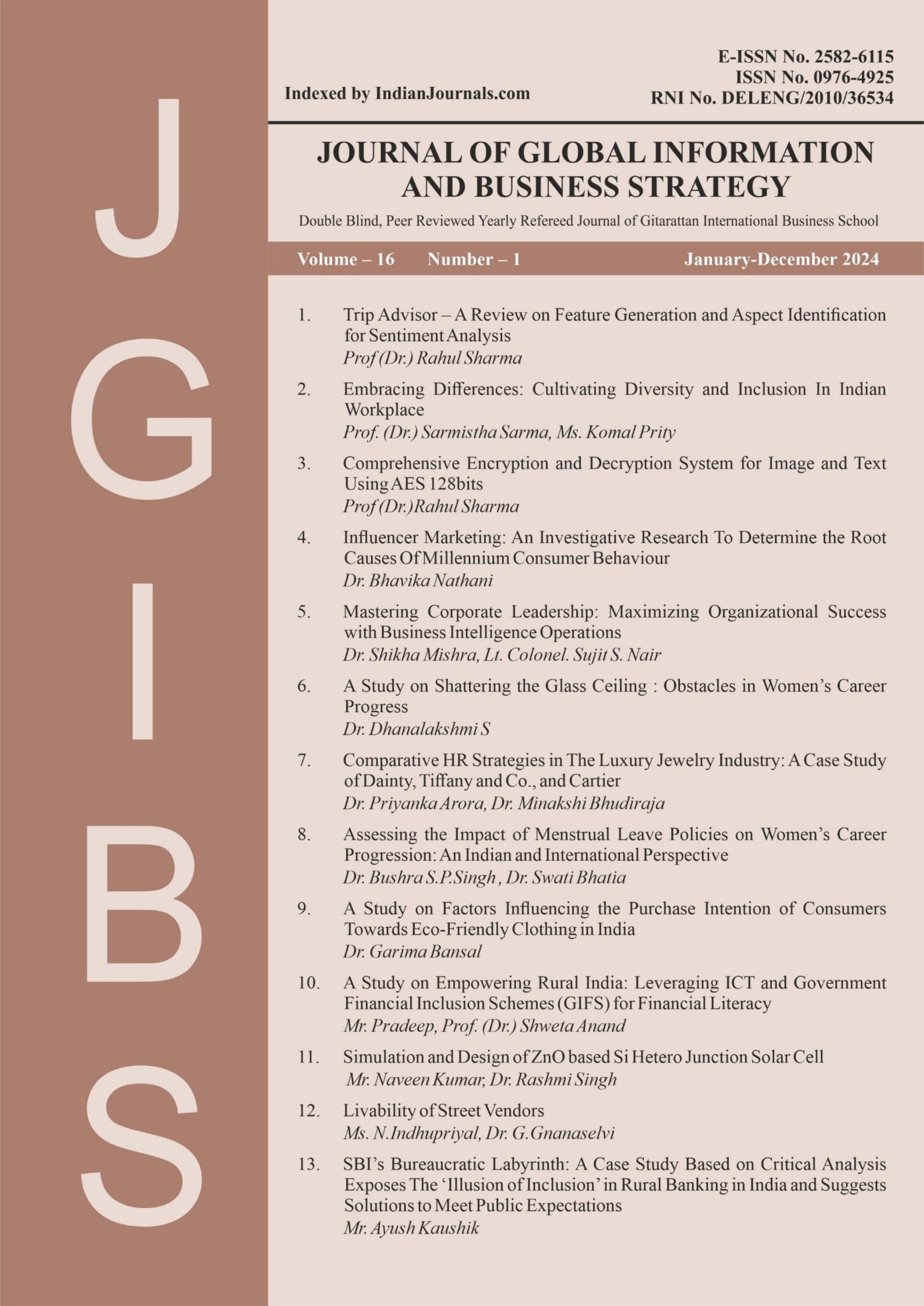 Year 2023, Volume 16, Number 1 (January to December 2024)
